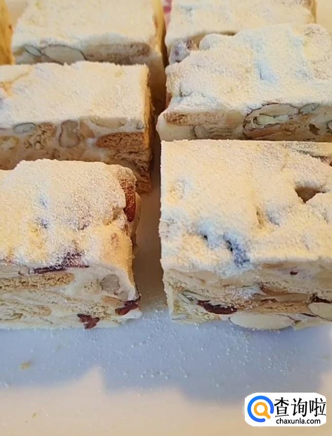 放凉定型以后,撒在上面一些奶粉,切成小块