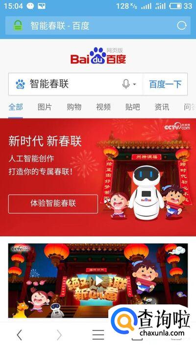 进入百度主页后点击搜索栏 ,在搜索栏中输入智能春联。