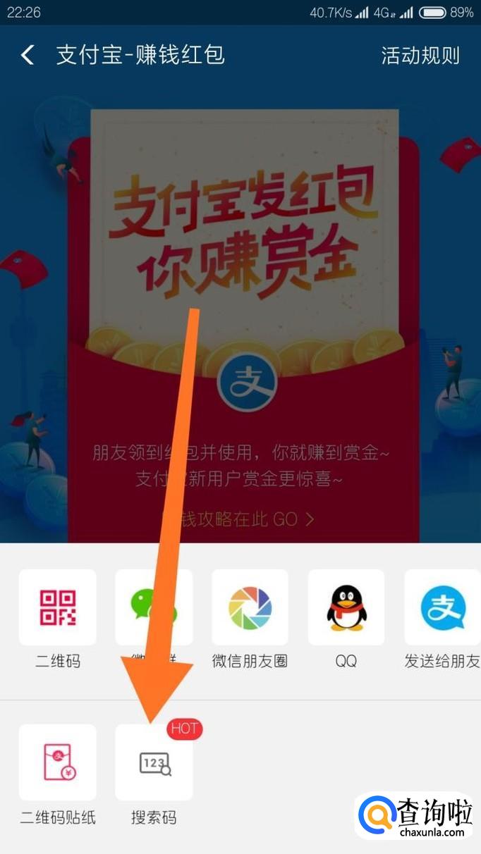 这里就比较关键了,可以看到有很多分享方式,我们点击“搜索码”,如图所示。