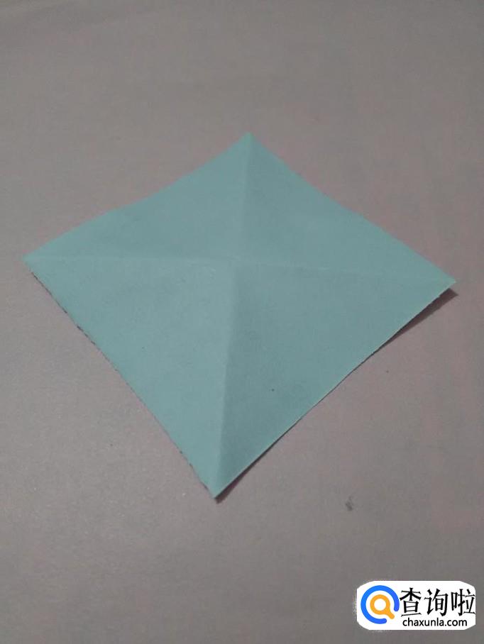 将正方形纸角与角对折,得到中间的两条对角线。