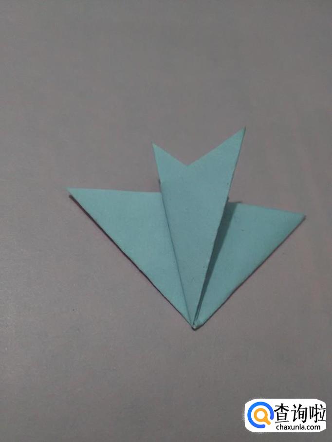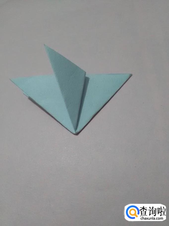 两手捏着底边的中点,往中间挤成如下的三角形。
