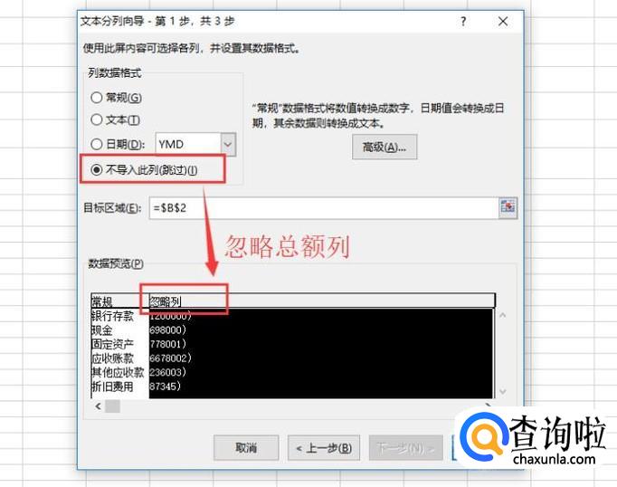 然后我们需要选择哪些数据可以忽略,这里要忽略金额数据,如下图所示