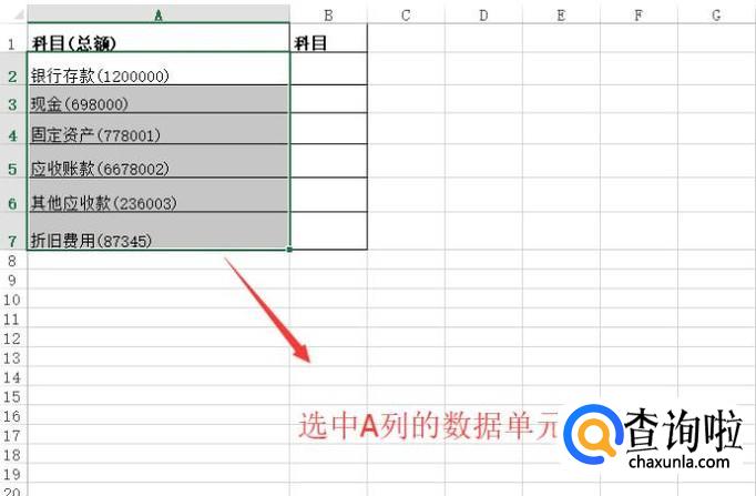 如何用Excel的分列功能导出科目名称
