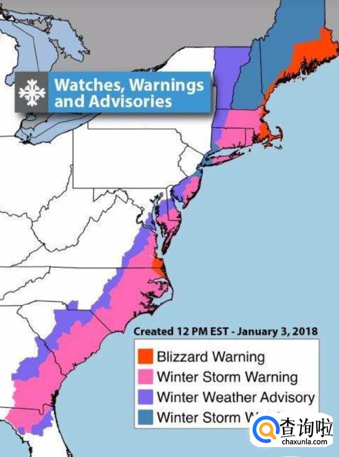 不过一般来说,炸弹气旋并没有什么实际威力,只不过是看起来特别炫酷罢了。但是曾发生在美国东海岸的爆炸气旋却成为了真真正正的“炸弹”,它造成了美国有史以来最严重的风寒,大量的公民因为无法适应突变的环境而生病甚至失去生命,下图所展示的是此次美国的受灾范围。