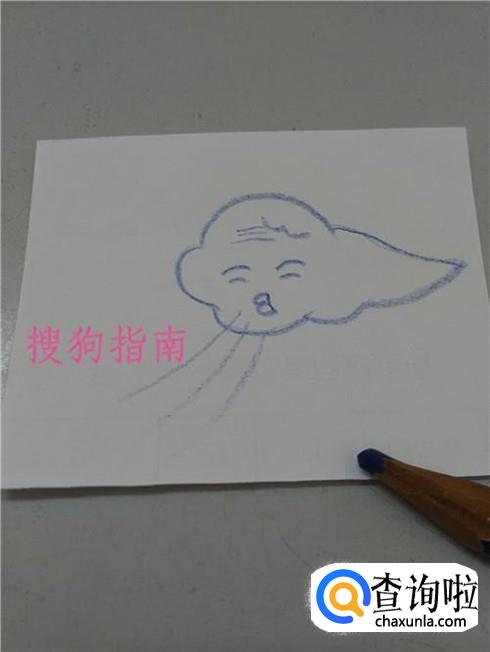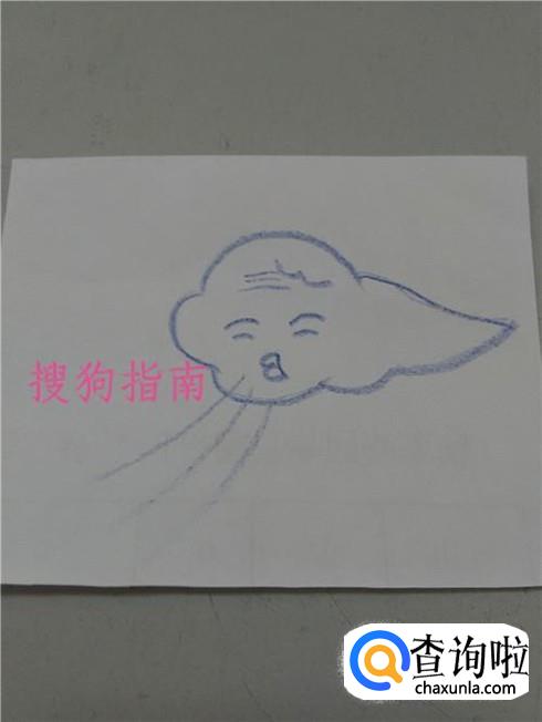 最后从嘴向左下角画三条弧线,表示风婆婆吹出来的风,到这里,风婆婆就画完了。