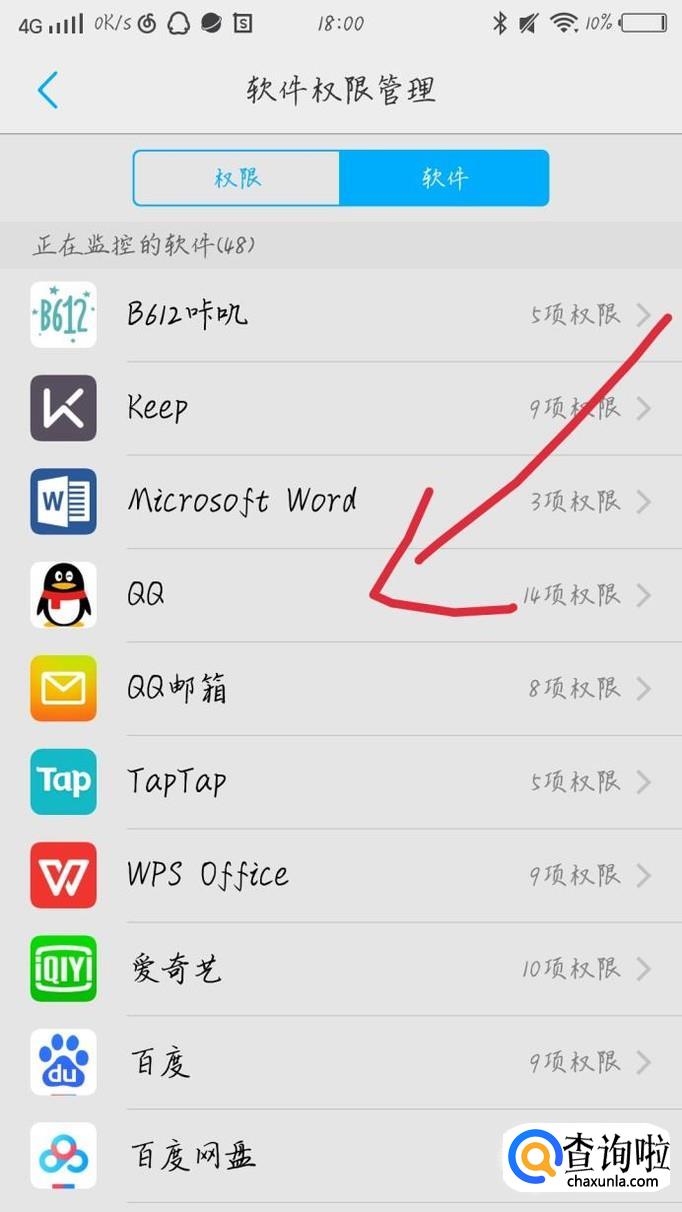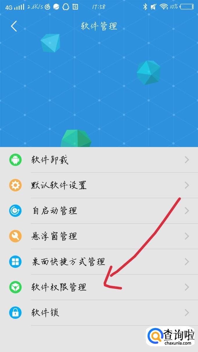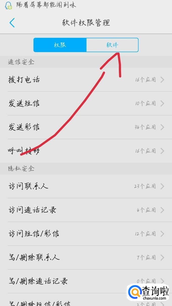 点击“软件权限管理”选项,如图1箭头所示。你会看到出现一个新的界面,如图2所示。