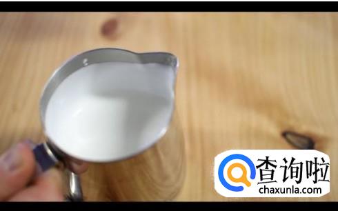打奶泡所使用的是进行冷藏了的牛奶,先要将牛奶倒进奶缸中,具体分量多少的话根据奶缸来进行判断,不能超过奶缸1/3的容量。