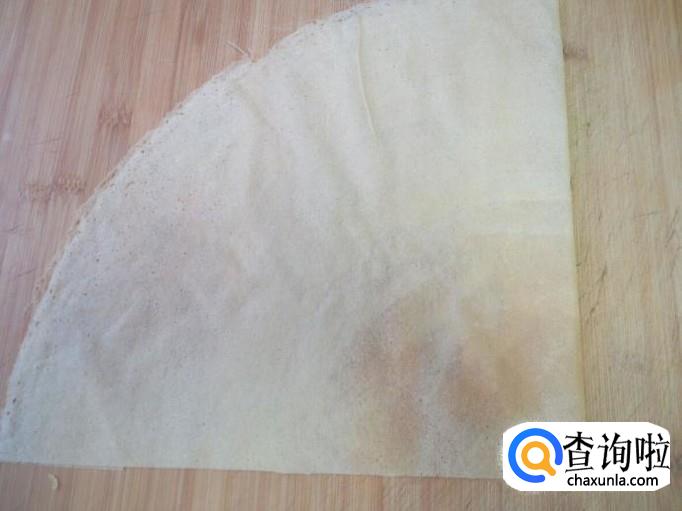 把切成半的煎饼,再对折成伞形。