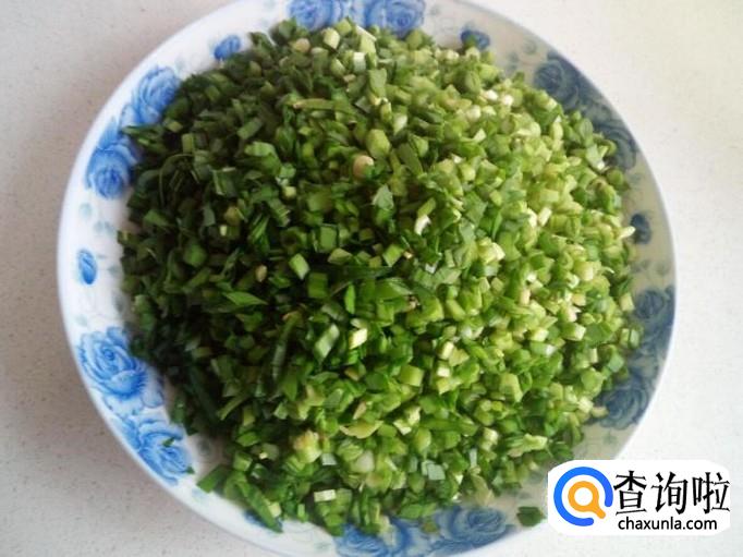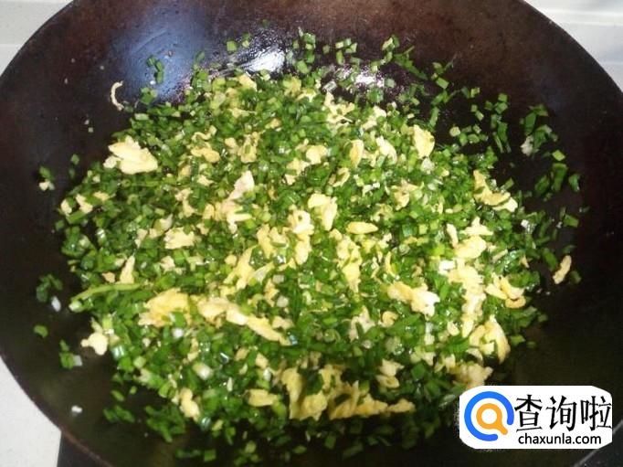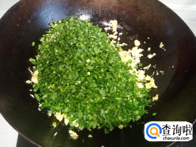 再放入韭菜末,拌和均匀。