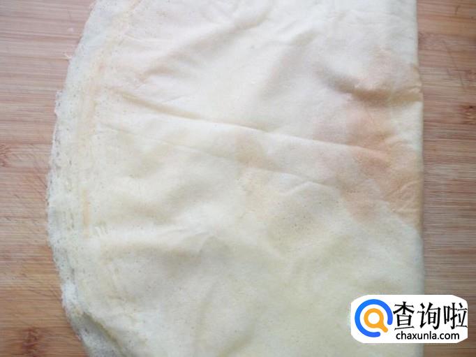 煎塌至4~5秒钟的时间,翻面煎塌,再4~5秒钟的时间,即熟,盛出后,继续煎塌下一个(如果煎饼比较厚,稍延长一下煎塌的时间)。