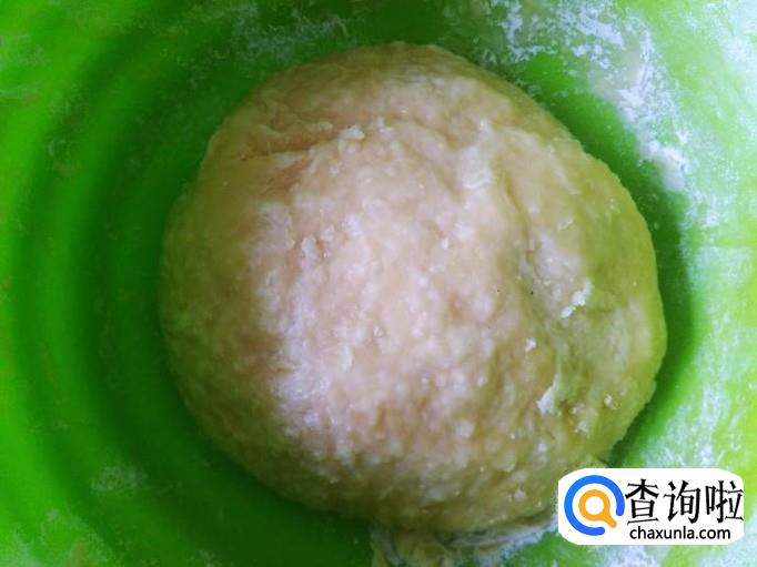 再200克面粉进去,加酵母【按说明下料】揉搓成粉团,用干净的湿毛巾盖住发酵。