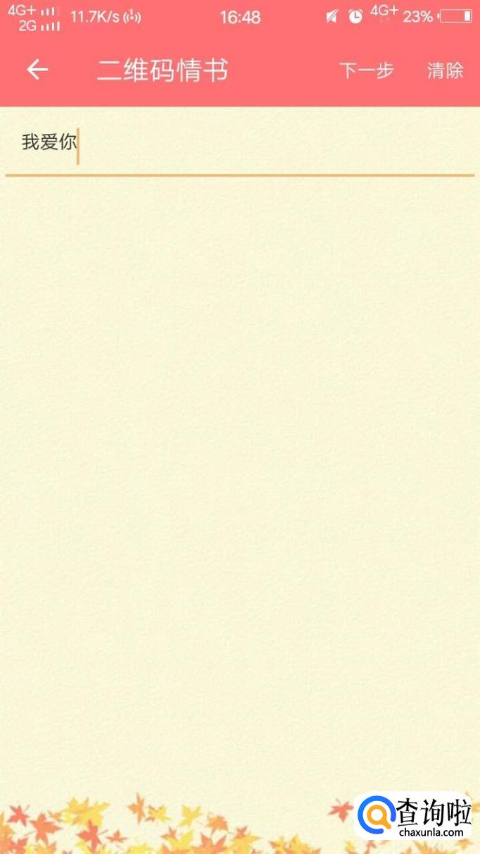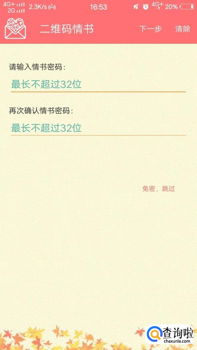 紧接着,我们输入自己的情书内容,再点击下一步,可以设置密码也可以点击下方的免密。