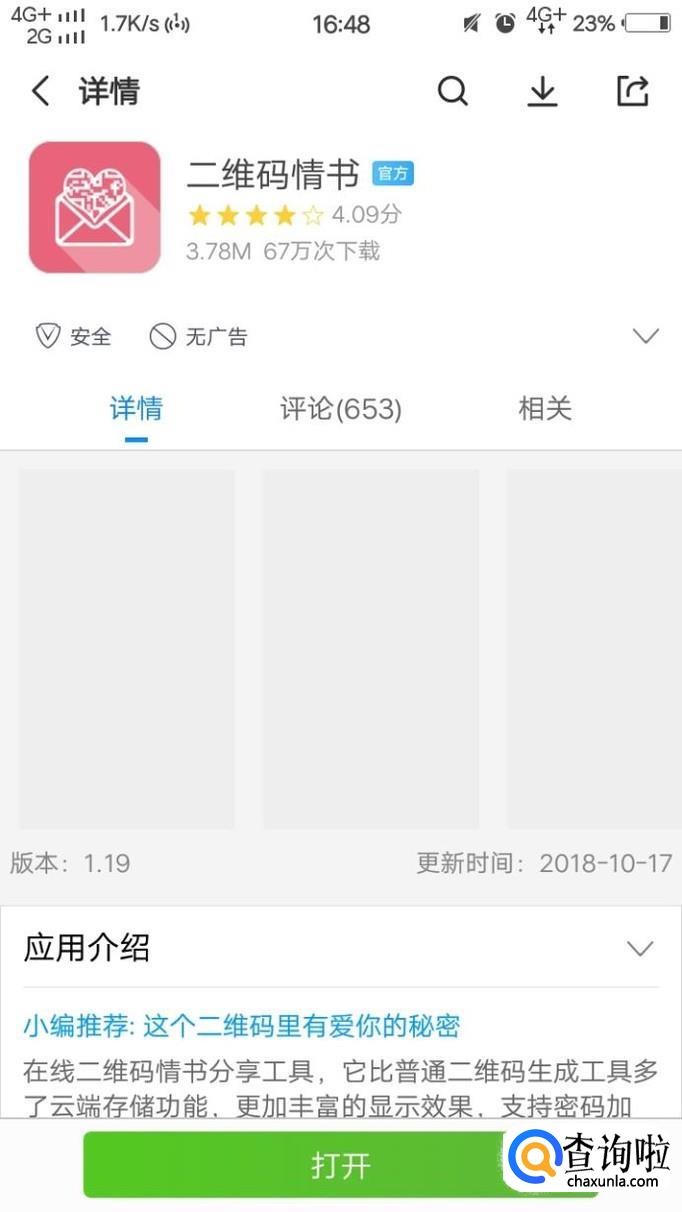首先,我们去收集应用商店下载一个二维码情书软件,并且选择点击打开。