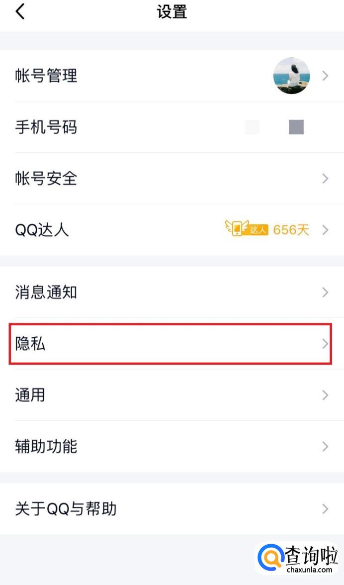 在“隐私”页面中找到“好友动态权限设置”,如下图所示。