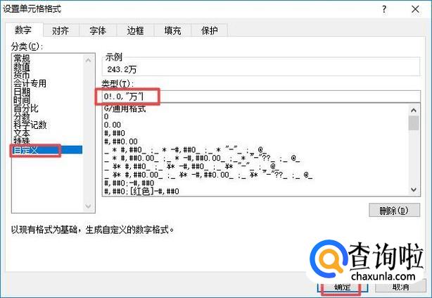 弹出的界面,我们点击自定义,然后我们在类型中输入0!.0,"万",之后我们点击确定;