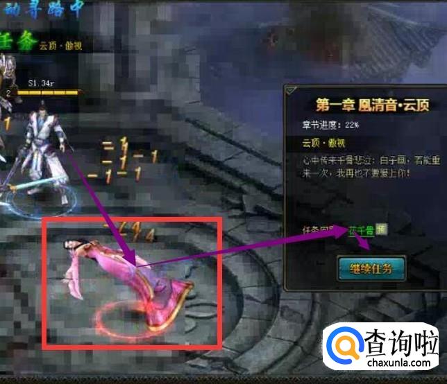 领取奖励完成开启下一步任务:击杀长留仙婢