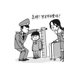 现在的规定是一名大人可以免费带一名身高低于一米二的小孩乘车。