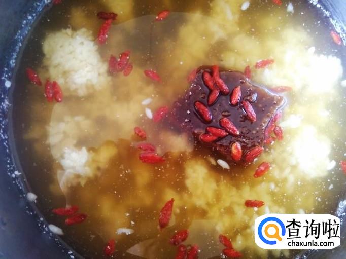 加入糯米酿、红糖开小火煮。