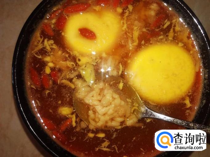 糯米酿小半碗,鸡蛋3个,当归、枸杞、黄芪、党参、红枣、红糖适量。