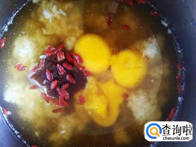 然后放枸杞和鸡蛋进锅,盖上盖子小火炖5分钟左右熄火。