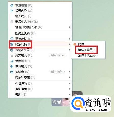 简繁体切换,也可以单击鼠标右键,直接选择简繁体切换——繁体,切换成功后,输入法会自动输入繁体,如图所示