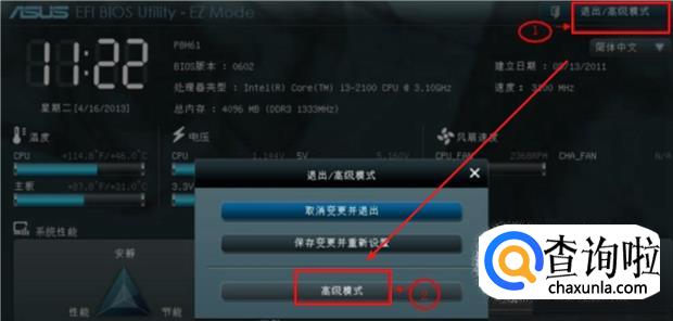 进bios设置界面后,点击右上角的模式切换按键,选择“高级模式”。