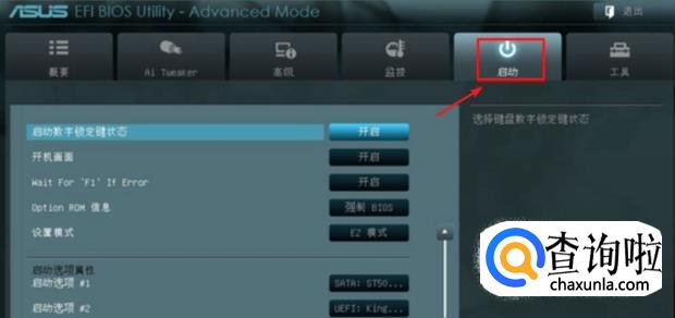 用键盘的“左右方向键”切换到“启动”子菜单中。