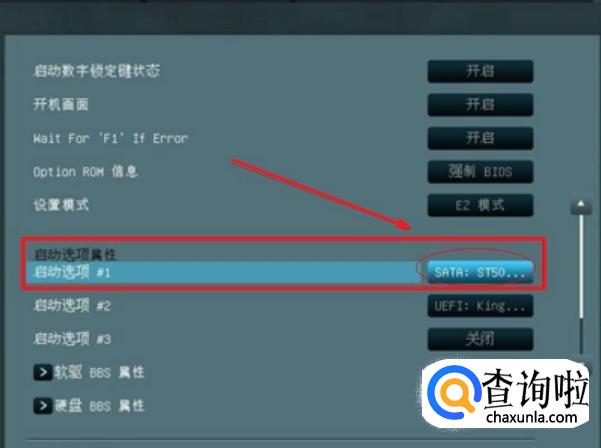 用键盘“上下方向键”切换到“启动选项#1”,按“回车”确认。