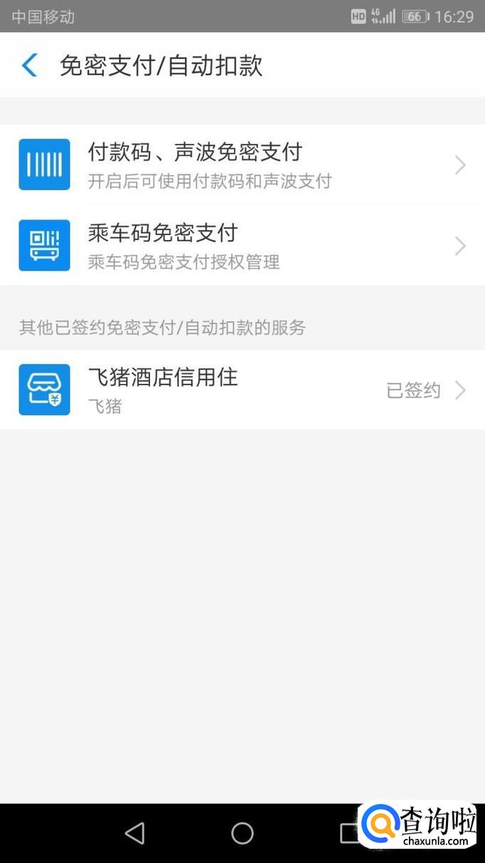 进入“支付设置”,点击“免密支付/自动扣款”进入,如图小编的开通了“淘宝——飞猪”,点击已开通的第三方服务进入。