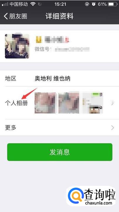 首先我们现在个人资料里打开朋友圈的个人相册。