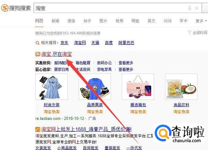 进入之后,搜索淘宝,点击并进入,如图所示。