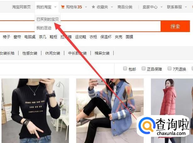 登陆之后,点击“已买到的宝贝”,进入下一页面,如图所示。