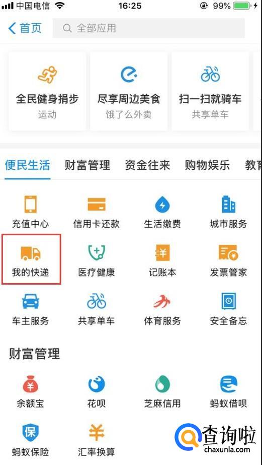如何用支付宝查快递?