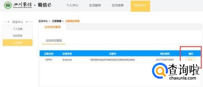 在设备绑定管理页面可查看当前绑定设备信息,选择“解绑”。