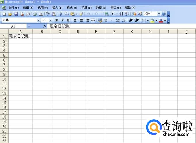 日记账可以分为现金日记账和银行存款日记账,这里以现金日记账为例,在第一行第一列的单元格中输入现金日记账几个字。