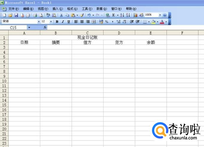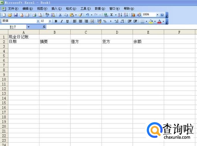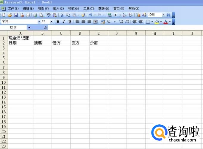 再选取第二行至二十三行和第A列至第E列所有的单元格,然后点击菜单栏中的田字边框,给这些单元格加上边框,日记账的格式就设计完了,记账的时候,把日期和摘要填上,再把借贷方的金额填上,余额等于上一笔的余额加上当日借方,再减去当日贷方,算出来的数就是余额。