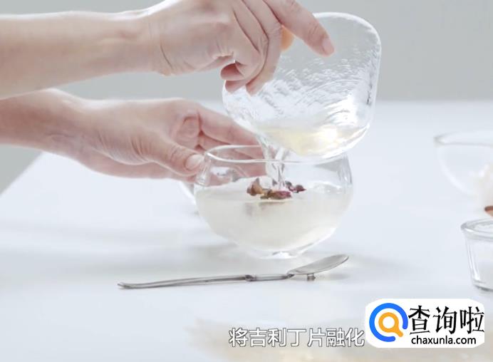 将荔枝肉放入后,冷藏2小时候后就凝固了,这样就做好了。