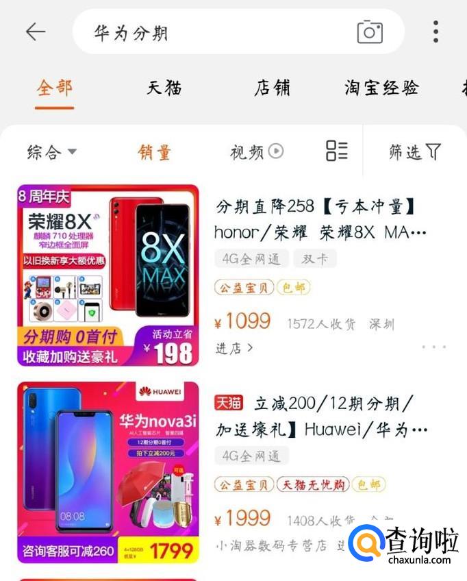 然后在淘宝界面的搜索栏中输入自己想买手机的型号(这里以华为为例)
