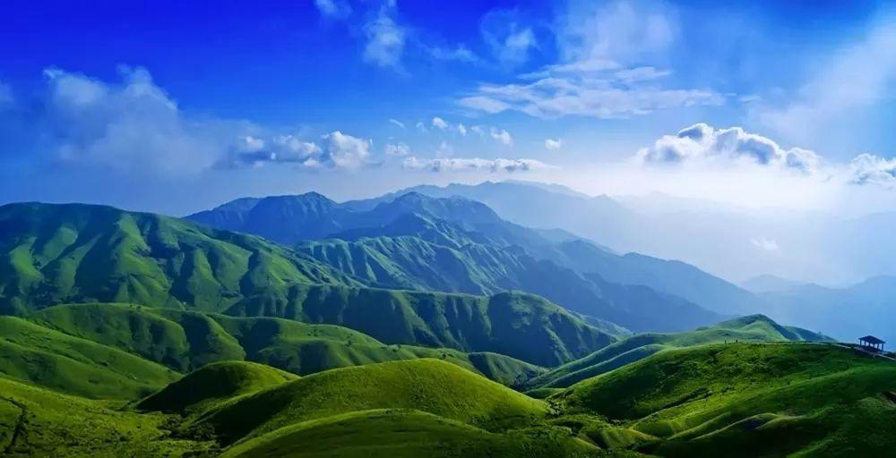 10、武功山位于中国江西省中西部,国家5A级旅游景区。景区内自然形成了“峰、洞、瀑、石、云、松、寺”齐备的山色风光,区内10万亩高山草甸绵绵于海拔1600多米的高山之巅与巍峨山势相映成辉,堪称天下无双;峰顶神秘的古祭坛群距今已有1700多年的历史,被誉为华夏一绝;气势恢宏的高山瀑布群、云海日出、穿云石笋,奇特的怪石古松、峰林地貌和保存完好的原始森林、巨型活体灵芝等景观令游人叹为观止;武功山气候温和,四季分明,雨量充沛,年平均气温14—16℃,夏季最高温度为23℃,低于同期庐山、黄山气温,是良好的避暑胜地。武功山动植物繁多,有动物200多种,植物2000多种,被中科院专家誉为天然动植物园。