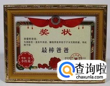 为了表示这个奖项的郑重感,要买一个和奖状大小的框子,把奖状装裱起来,这样更美观,然后献给老爸,老爸肯定乐得合不拢嘴。