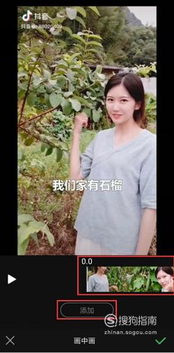 进入新的页面后,拖动进度条找到需要添加画中画的场景,然后点击“添加”。