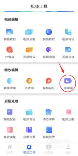 在视频工具页面的特效编辑模块中,找到并点击“画中画”,进入视频导入页面。