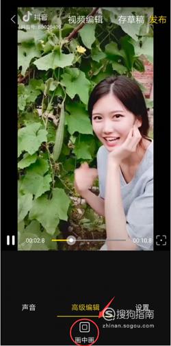 视频编辑页面中,有声音、高级设置、设置三种操作,制作画中画需要点击高级编辑中的“画中画”功能。