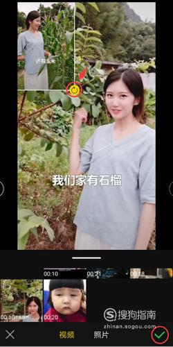 选择需要添加的视频或照片,点击即可选择完成,选择好后可以按住视频移动到需要添加的位置,按住黄色图标可以控制视频大小,设置完成后点击“√”。
