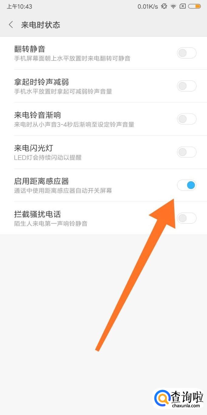 最后关闭“启用距离感应器”选项,就可以防止手机在通话时自动关闭屏幕。