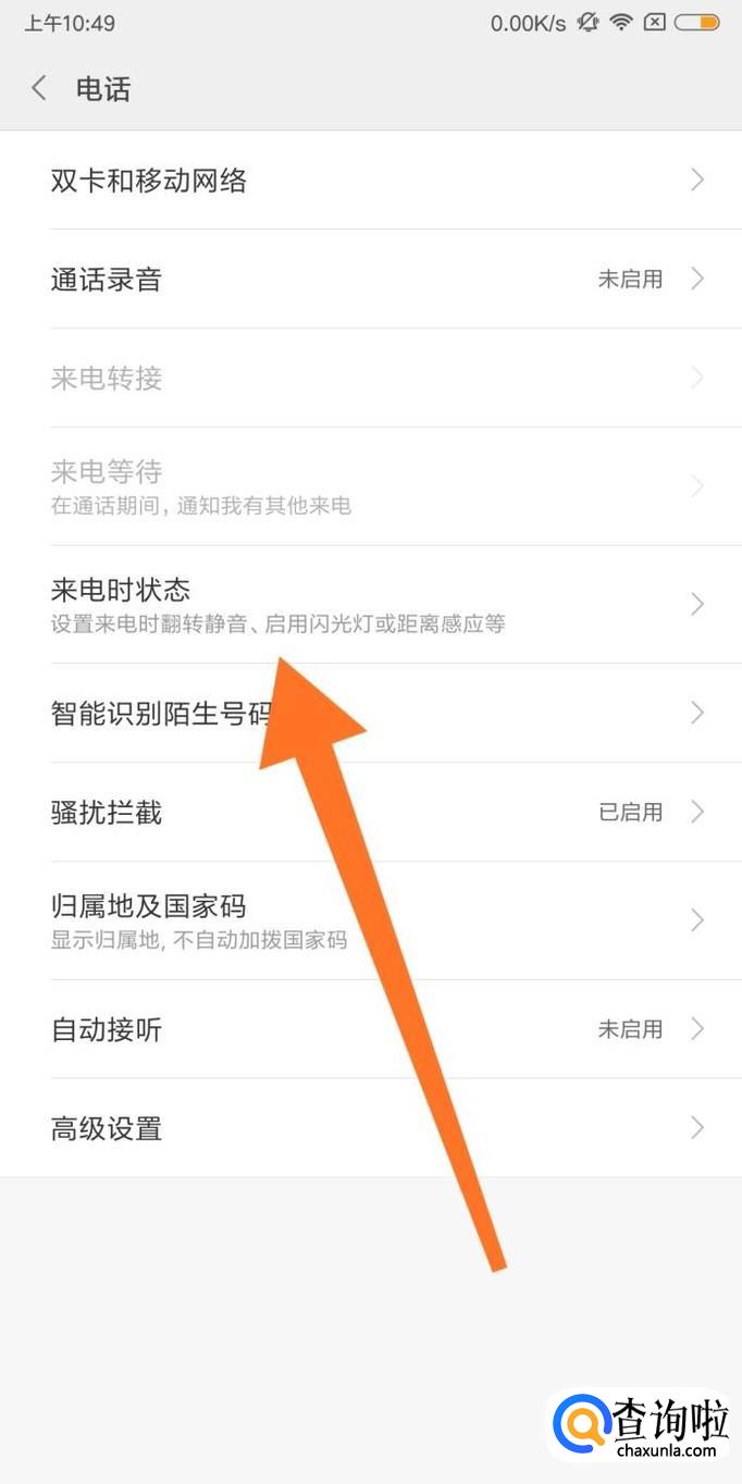 接着点击进入“来电时状态”设置选项。
