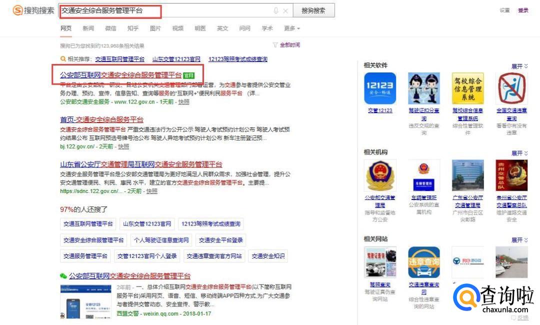 首先打开浏览器,搜索‘交通安全综合服务管理平台’,选择进入官网。