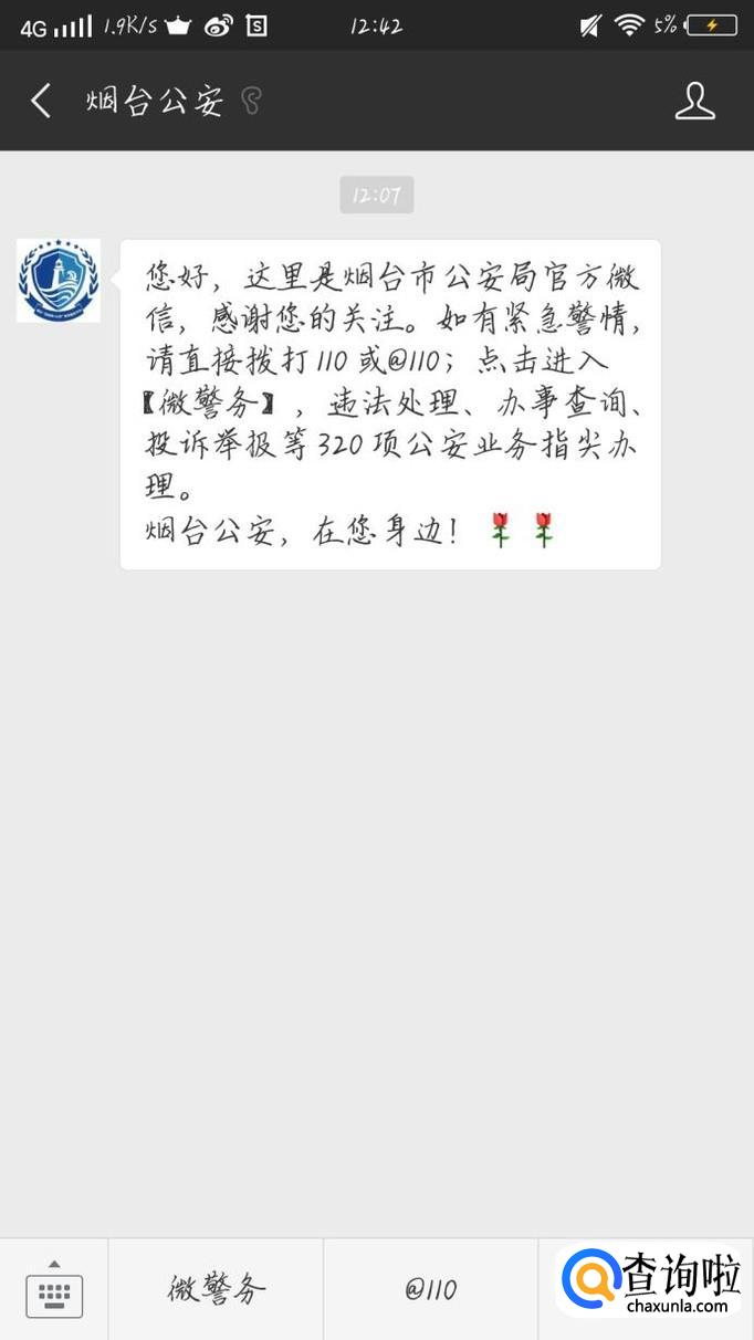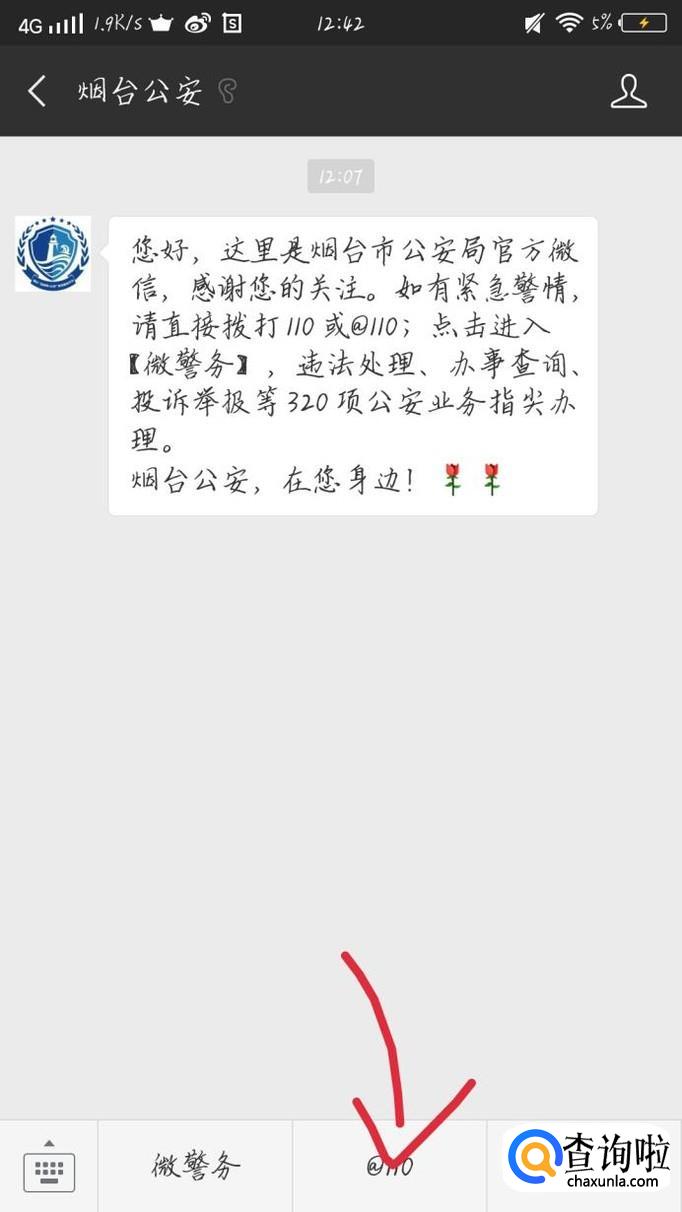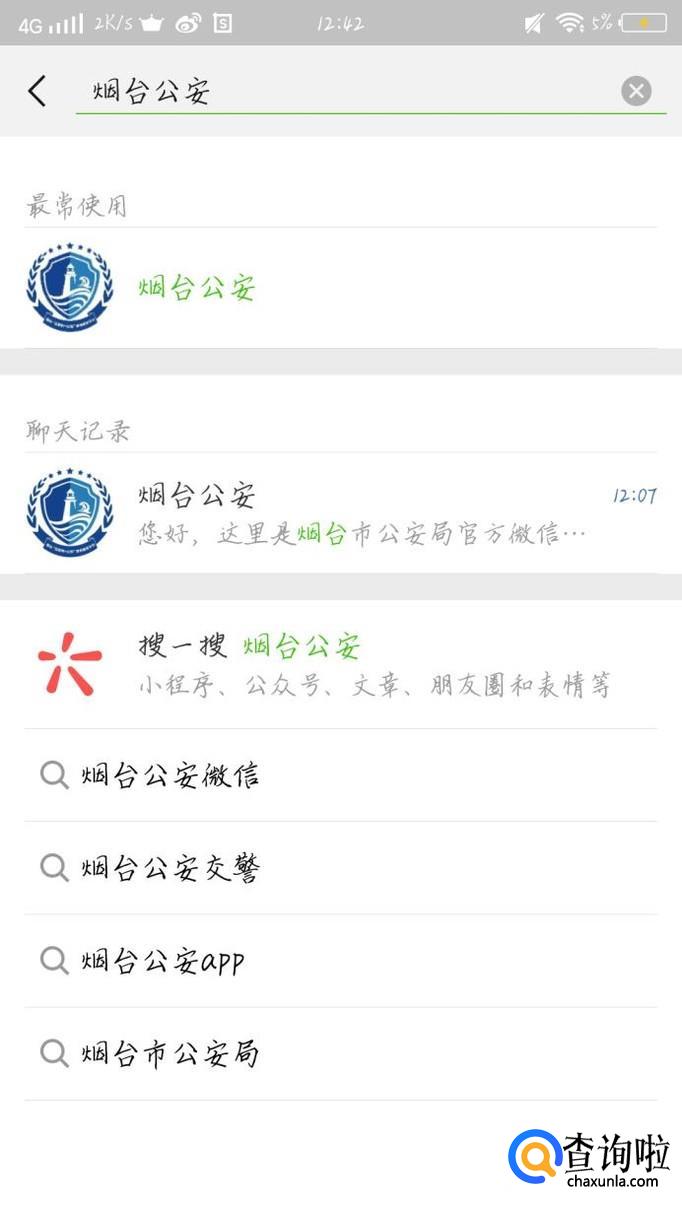 点击右上角的“放大镜”按钮,如图1箭头所示。在搜索框中输入你们所在地区后面加公安。就比如烟台公安吧。如图2所示。