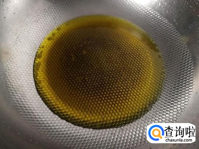 起锅烧热,下油,下花椒和大蒜片爆香。
