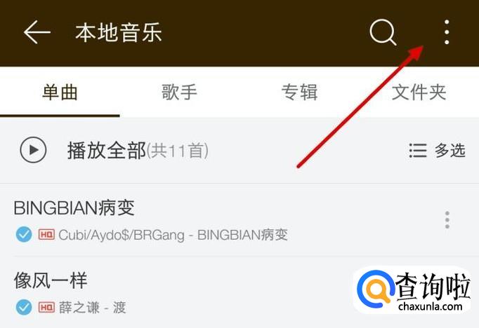 我们在本地音乐界面右上角会看到有“三个点”,我们点击。